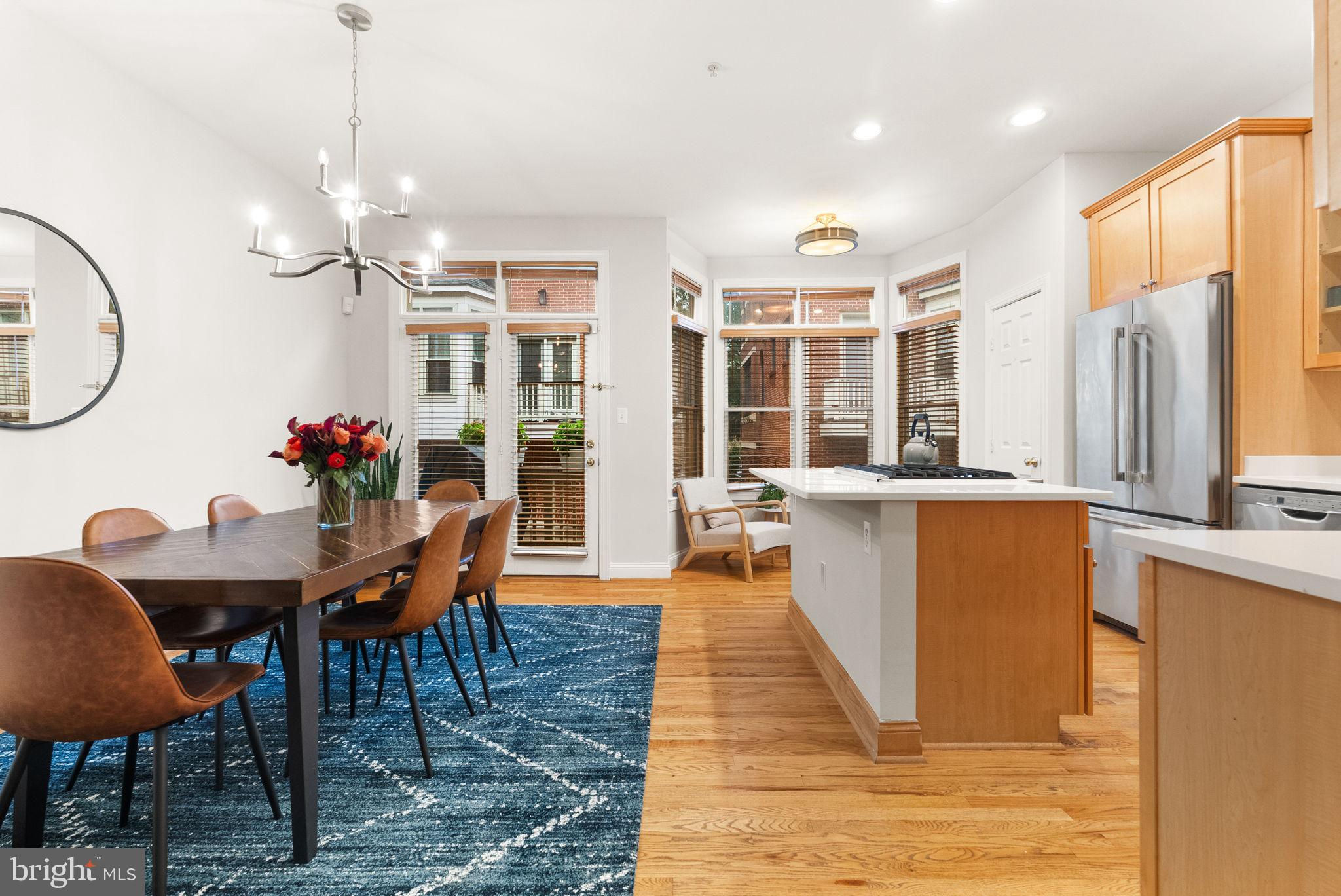 Step into this stunning Clarendon townhome where space, style, and sunlight collide! Wrapped in oversized windows and flooded with natural light, this expansive home stands out with generous proportions rarely found in Arlington's most popular urban district. From the moment you walk in, you'll notice the fresh updates like the new kitchen countertops and geometric tiled backsplash and the absolutely eye-catching bathroom remodel upstairs. Entertain effortlessly between the open kitchen, dining and living rooms on the main level. And enjoy cooking in the updated kitchen, which also features a center island with gas cooking, abundant cabinetry, and a separate pantry. Large gatherings are a joy with a dining space that easily fits 10 guests. Just below the main living level, you'll find a second large living room accessed from the 2 car garage. Down one more level, is the front door, entryway and a super private guest suite with full bath that offers an ideal space for a guests, a home office, home gym, or au-pair setup. The upper two floors offer the primary suite, and two secondary bedrooms with a fully renovated mod style hall bathroom. Retreat to the luxurious primary suite, complete with a cozy sitting area, a large walk-in closet, and a spa-inspired bath with soaking tub, dual vanities, and a shower. The secondary bedrooms are spacious with great closet storage. Situated on the west end of Clarendon the home offers a fantastic and exciting location with easy commuter access to GW Parkway, Rt 66, 395, the Orange and Silver line Metros, and National Airport. Within blocks of Trader Joes, Whole Foods, and a multitude of highly rated restaurants, cafes, fast-casual lunch spots, and many other retail shops.