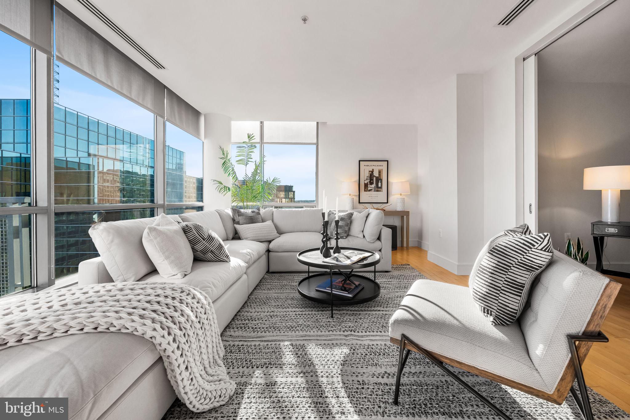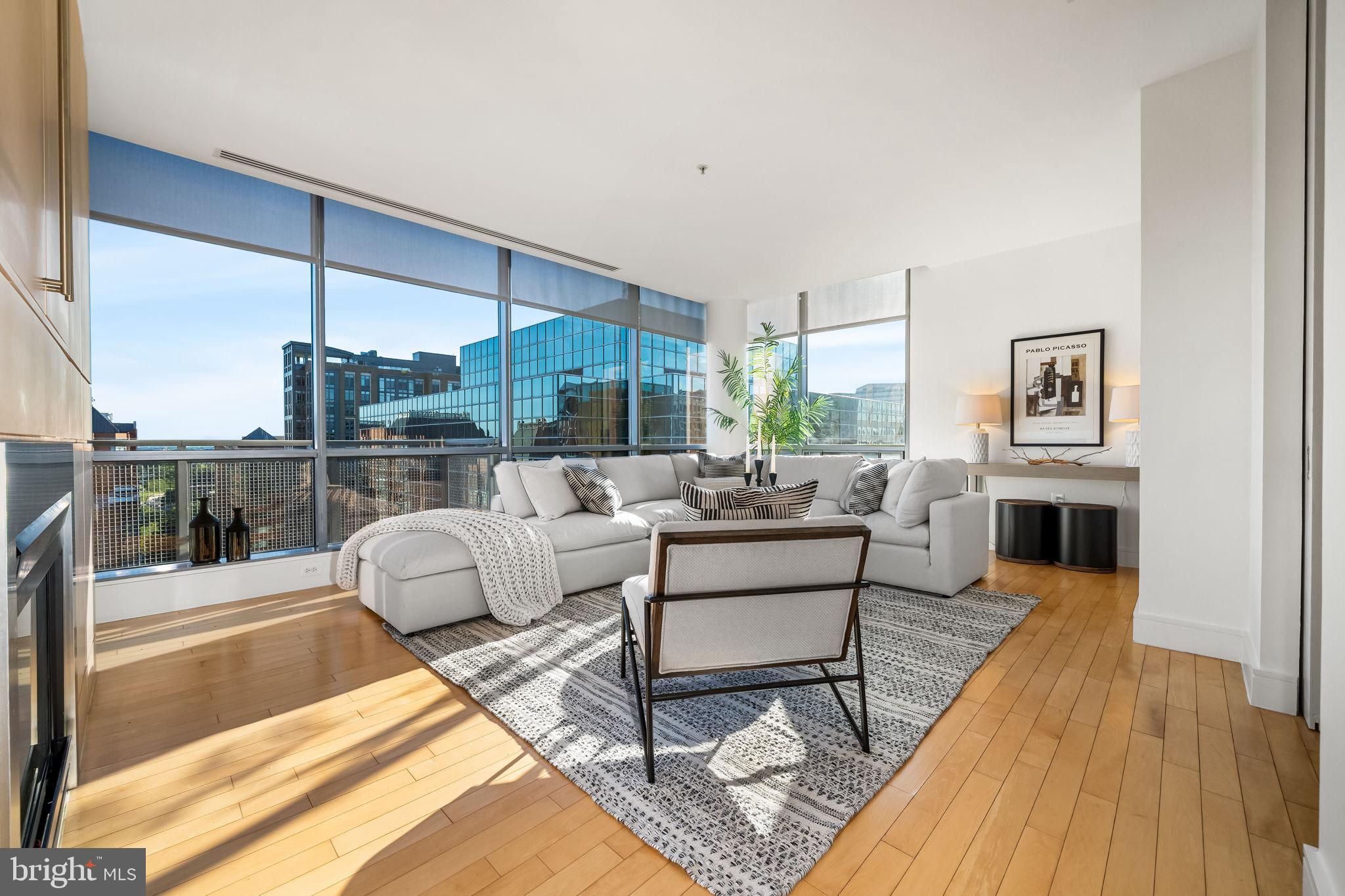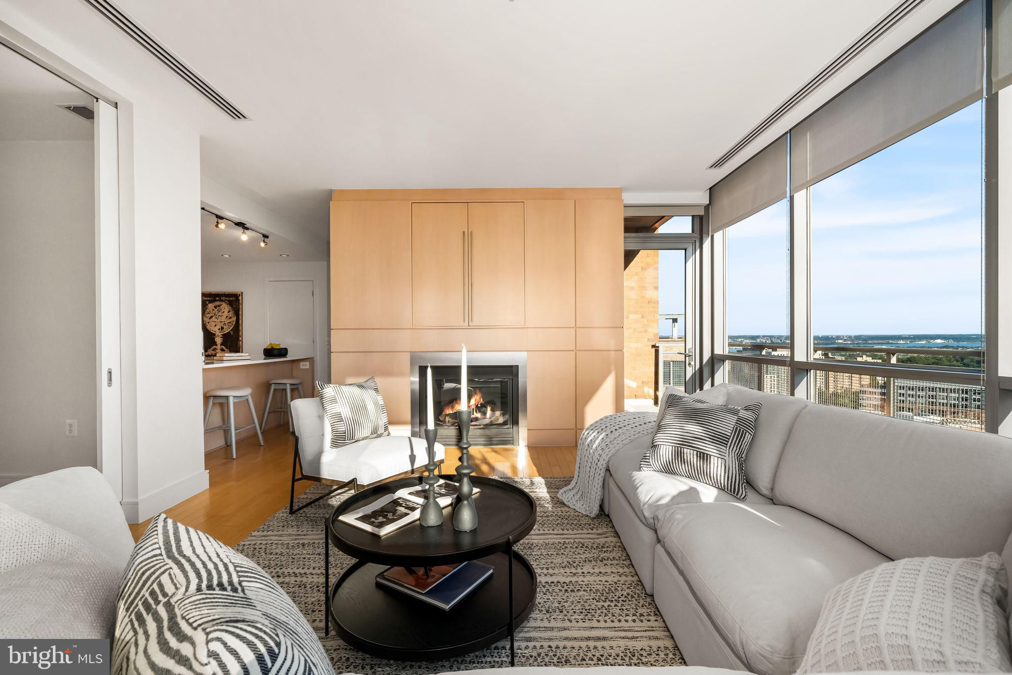Welcome to The Odyssey, one of Arlington’s most sought-after condominium communities. This expansive 2-bedroom, 2-bathroom plus den residence offers over 1,400 square feet of stylish living on the exceptional 16th floor, complete with sweeping views and abundant natural light streaming through floor-to-ceiling windows. A private balcony with monument and river views spans along the dining and living room, creating the perfect spot to unwind or take in the skyline. The open floor plan is ideal for both everyday living and entertaining. The gourmet kitchen with Calactta Botanica dining counter, features light cabinetry, sleek cooktop, stainless steel wall oven and microwave, built-in refrigerator, and dishwasher. Flowing seamlessly into the dining area and spacious living room—with a modern fireplace and built-in entertainment center—the layout is designed for comfort and connection. The primary suite is a true retreat, showcasing a large walk-in closet with a custom organization system and a stunning spa-like ensuite bath with marble tile, a double vanity, soaking tub, and frameless glass shower. The second bedroom is equally spacious with direct access to the second full bath, which also serves as a guest bath, and also features a sleek frameless glass shower. Additional highlights include a dedicated laundry room with front loading washer and dryer, ample storage, and two perfect side-by-side garage parking spaces. The Odyssey offers an impressive array of amenities, including a rooftop terrace with panoramic views of Washington, DC (including the Washington Monument and Capital ), outdoor pool, 24/7 concierge, stunning fitness center, party room. Residences on this level have access to the Platinum Lounge. Condo fee includes water, sewer, trash, and gas. Perfectly positioned in the heart of Arlington, you’ll enjoy easy access to Metro, commuter routes, shopping, dining, and everything that makes urban living so convenient.