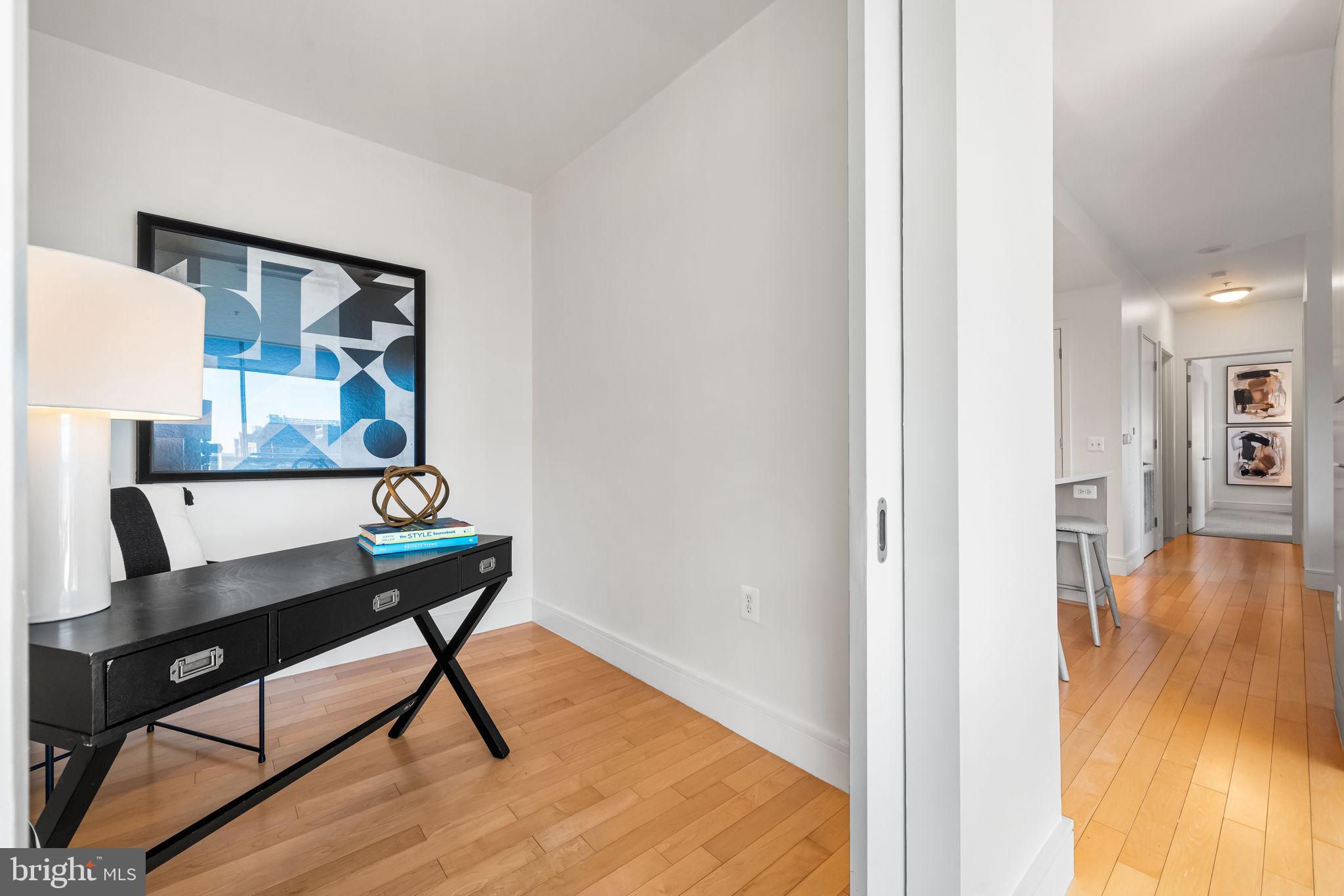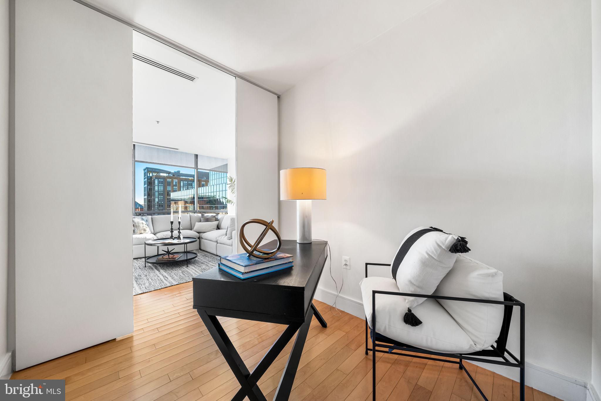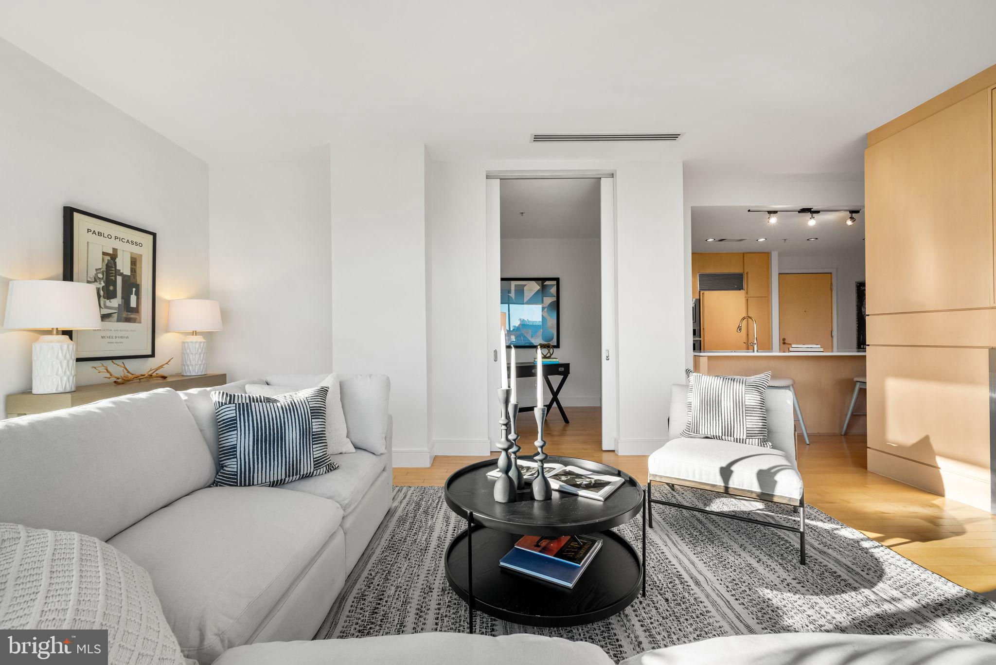 Welcome to The Odyssey, one of Arlington’s most sought-after condominium communities. This expansive 2-bedroom, 2-bathroom plus den residence offers over 1,400 square feet of stylish living on the exceptional 16th floor, complete with sweeping views and abundant natural light streaming through floor-to-ceiling windows. A private balcony with monument and river views spans along the dining and living room, creating the perfect spot to unwind or take in the skyline. The open floor plan is ideal for both everyday living and entertaining. The gourmet kitchen with Calactta Botanica dining counter, features light cabinetry, sleek cooktop, stainless steel wall oven and microwave, built-in refrigerator, and dishwasher. Flowing seamlessly into the dining area and spacious living room—with a modern fireplace and built-in entertainment center—the layout is designed for comfort and connection. The primary suite is a true retreat, showcasing a large walk-in closet with a custom organization system and a stunning spa-like ensuite bath with marble tile, a double vanity, soaking tub, and frameless glass shower. The second bedroom is equally spacious with direct access to the second full bath, which also serves as a guest bath, and also features a sleek frameless glass shower. Additional highlights include a dedicated laundry room with front loading washer and dryer, ample storage, and two perfect side-by-side garage parking spaces. The Odyssey offers an impressive array of amenities, including a rooftop terrace with panoramic views of Washington, DC (including the Washington Monument and Capital ), outdoor pool, 24/7 concierge, stunning fitness center, party room. Residences on this level have access to the Platinum Lounge. Condo fee includes water, sewer, trash, and gas. Perfectly positioned in the heart of Arlington, you’ll enjoy easy access to Metro, commuter routes, shopping, dining, and everything that makes urban living so convenient.