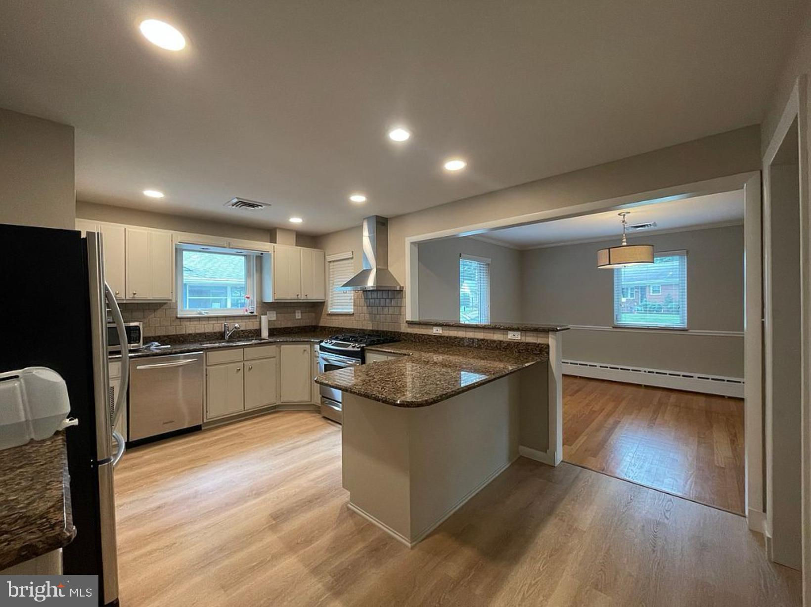 On top of Arlington Ridge on a huge oversized lot with lots of possibilities inside and out. House is much bigger than it looks from the Curb. Four bedrooms and three renovated full bathrooms. Renovated kitchen with stainless steel appliances, granite countertops and recessed lighting. Large dining room with bar area off kitchen. Very grand living room with large windows. Fantastic sunroom with sliding glass windows off of living room. Huge renovated basement recreation room with recessed lighting and walkout to flagstone patio. Separate laundry room and large workshop or storage room. Fully floored attic with full staircase for more great storage. Attic has 9 ft ceiling in middle so has the possibility of being partly finished. Large flagstone patio with great wilderness setting and lots of trees. One car garage and more parking in long driveway. Fantastic location with lots to do in the local area!