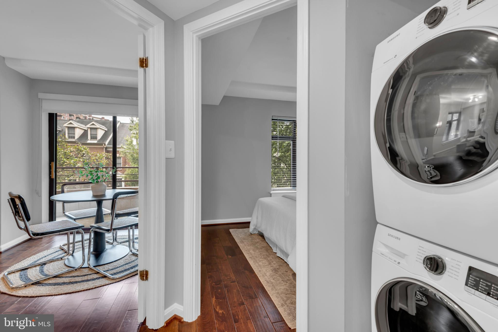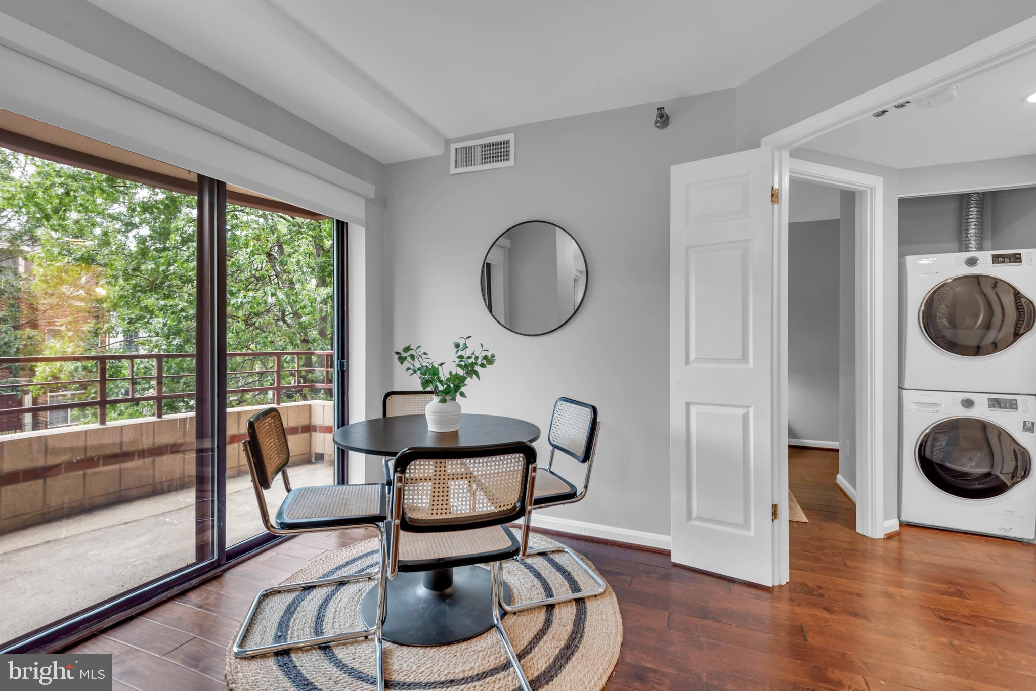 Supremely located in the desirable building of The Charleston, this 1 Bedroom and 1 Bath home impresses with an openly flowing floorplan, tons of natural light, gorgeous hardwood flooring, a crisp color scheme, and an entertainment-ready living room. Upgraded for chic universal appeal, the kitchen features stainless-steel appliances, quartz countertops, white shaker cabinets, a dishwasher, an electric range/oven, a refrigerator, and a large passthrough window to the dining room. For those seeking alfresco experiences, the covered patio is the ideal space for espresso or wine. Abundantly sized for comfort, the primary bedroom also boasts a deep closet and tray ceilings. Practical everyday living is made simple with in-unit laundry, reserved secured garage parking space #43 (P1), and an affordable flat electrical cost of just $33.33/month included in the condo dues. Surrounded by excellent shopping and restaurants—Whole Foods, Starbucks, and two Metro stations just blocks away—there is always something new to discover just around the corner. The Charleston also provides premium amenities including a concierge, pool, fitness center, and an additional storage unit.