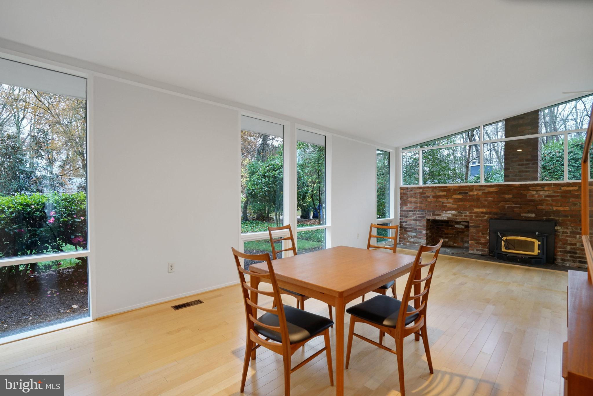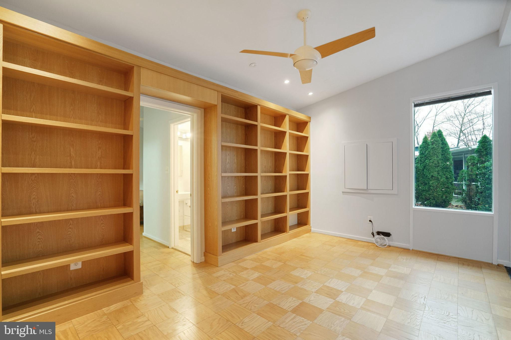 This one-level expanded Hollin Hills property is being sold as-is, yet is solid and well-maintained where it matters most. With excellent curb appeal, highlighted by clean architectural lines and simple landscaping, the home includes a rare 580 SF two-car garage addition discreetly hidden from the street and offering exceptional storage, studio potential, or workshop space. Inside the home, the space is airy and light thanks to vaulted ceilings and quality double-pane windows throughout, and features a layout that blends classic Goodman design with thoughtful expansions. The enlarged floor plan includes a family room/library with custom built-ins and a true primary bedroom suite complete with a modern bath, two walk-in closets, and direct access to the outdoors. The original portion of the home features an open living space and dining area with walls of windows and a cozy wood-burning stove, plus a kitchen with solid wood cabinets and space for a breakfast table. Two additional bedrooms and a full bath with tub complete the main living areas.While the home is ready for updates, it is entirely livable as-is, giving buyers the flexibility to move in right away or renovate over time. With strong bones, a rare garage addition, and a desirable cul-de-sac location, this is a fantastic opportunity to create your own Hollin Hills retreat and transform a well-loved house into your home.