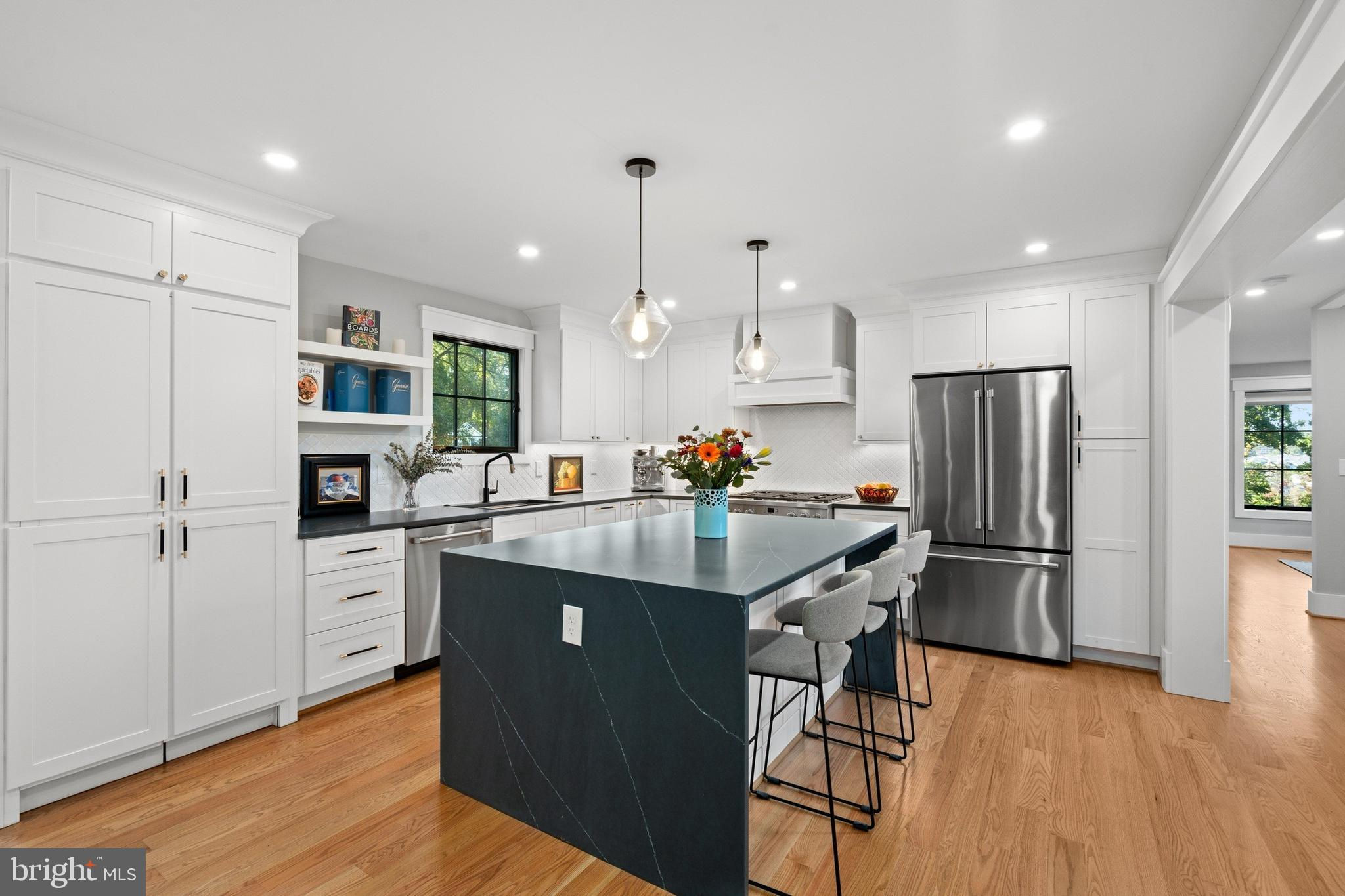 Come fall in love with your dream home at 3608 Orlando Place! Beautifully situated on a rolling hill at the highest point on Orlando Place sits this elegant custom built home by Old Glory Construction on a no-thru street that ends on a cul de sac. This handsome estate features six bedrooms (three are bedroom suites with their very own private bathroom) and five and a half bathrooms. Enjoy picturesque views from almost every room in this home! The home faces East allowing for an abundance of natural morning sunlight and the opportunity to never miss a sunrise! The large transom windows allow for ample natural sunlight to fill the home. The main level features an open layout of the quaint formal living room which features one of the two wood burning fireplaces in the home which leads to the spacious formal dining room great for making memories with family and friends. The dining room opens up to the lovely trex deck that overlooks the fenced in back yard which is accessed through the dual sliding glass doors. Spend time preparing delectable chef inspired meals in your one of a kind stunning gourmet kitchen that features a large hidden walk-in pantry with plenty of shelving. There is plenty of cabinetry along with quartz countertops, top of the line Cafe stainless steel appliances to include a built-in microwave, dishwasher, gas stove and side by side refrigerator. Entertain at your kitchen island that features bar stool seating. All of the recessed lighting in the home including the bedrooms come with built-in dimmers for an added touch (except for the bathrooms). Every bedroom has it's own custom closet with built-in book shelves to elevate the need for bulky furniture or bookcases. The main level also features an en-suite/in-law suite with it's own private bathroom (it could also be used as office). The upper level features a luxurious primary suite that faces East which allows you to enjoy the morning sunlight. It is one of two bedrooms that faces East. The primary bathroom features dual vanities, a spacious glass enclosed shower with rainfall shower heads. In addition, there are three secondary bedrooms on the upper level and one hallway full bathroom that serves the two bedrooms that do not have private bathrooms. Laundry is a breeze with the bedroom level laundry closet. The lower level features a recreation room with the second wood burning fireplace, a bedroom and full bathroom along with plenty of closet/storage space. It also has a wet bar in the bonus room. The home is wired for Comcast and Ting for internet/wifi capability. Newly expanded landscaping showcases vibrant, colorful plantings in both the front and back yards. Enjoy the added convenience of a newly built library on the second floor, located just off the primary bedroom. High-end gutter guards have also been installed, eliminating the need for yearly maintenance and providing long-lasting protection (warranty can be transferred to new owner). The owner has invested a significant amount on custom landscaping, an irrigation system and exterior lighting. Don't miss this rare chance to own this custom built home with beautiful architectural finishes throughout the home in a superb location! Close to Amazon HQ2, Crystal City, DC, and Shirlington! Truly a one of a kind find. Schedule your showing and submit your offer today before it's gone! Offers will be reviewed as they come in. ***Attended showings by the LA and a lender letter/proof of funds must be provided in order to see the property.***