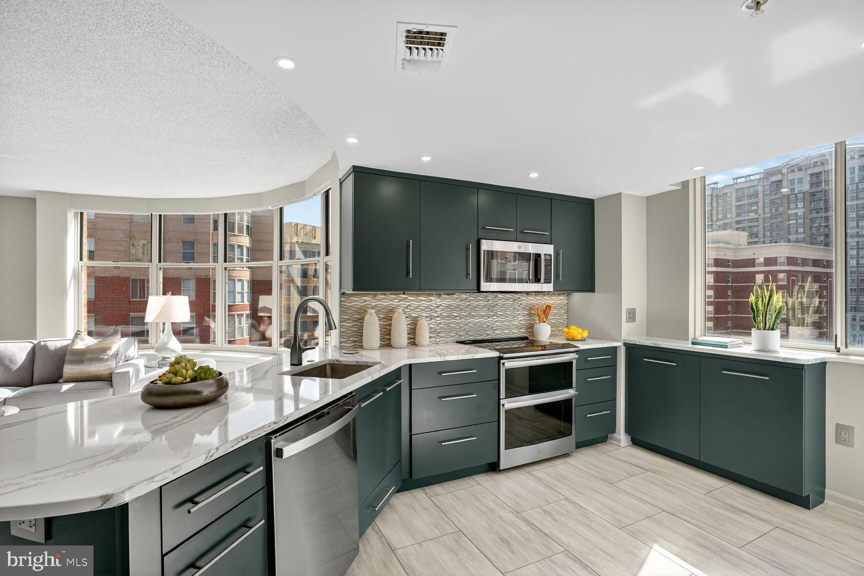 Experience spectacular luxury in the heart of Arlington. This stunning, rarely available, 3 bedroom, 2 bathroom corner unit, recently renovated down to the studs, features over $250K in premium upgrades. Enjoy expansive curved windows, abundant natural light, and sweeping views. Offering nearly 1,300 sq ft of updated elegance, this sought-after floor plan combines modern finishes, custom upgrades and stylish design in one of Arlington's most desirable communities. Inside, a gourmet kitchen with quartz countertops and stainless-steel appliances opens to an inviting living room anchored by a modern electric fireplace with stone hearth and a rounded architectural ceiling. A separate dining room with coffered ceilings creates the perfect space for entertaining. The owner’s suite features pool views and a spa-inspired bath with a new jetted tub, steam shower, and marble finishes. The second full bath also includes a steam shower and marble tiles. Generous storage includes custom walk-in closets, built-in shelving, and a large private storage locker. A prime parking space (#116), ideally located next to the elevator, also conveys. Lexington Square is a well-managed, pet-friendly, smoke-free community with Low Condo Fees and resort-style amenities, offering two sparkling outdoor pools with jacuzzi, a modern fitness center, elegant party room, outdoor courtyard with grill areas, EV charging, bike storage, car wash station, and a secure package area—all supported by friendly on-site management and daily custodial service. Condominium is VA and FHA approved. Enjoy true car-free living—just 3 blocks to 2 Metro stations, Virginia Square and Ballston Metro, and steps to popular Ballston Quarter, shops, restaurants, library, Quincy Park, and bike trails. Commuters will appreciate easy access to I-66, Route 50, I-395, GW Parkway, and both DCA & IAD airports. This residence delivers the perfect balance of luxury, location, and lifestyle. Step into the vibrant energy of Arlington—defined by its walkability, dynamic lifestyle, major employers, and seamless access to D.C.—offering the excitement of city living with acres of award-winning parks. Compare this home to anything else in MD, DC, or VA — nothing comes close. Don’t miss it!