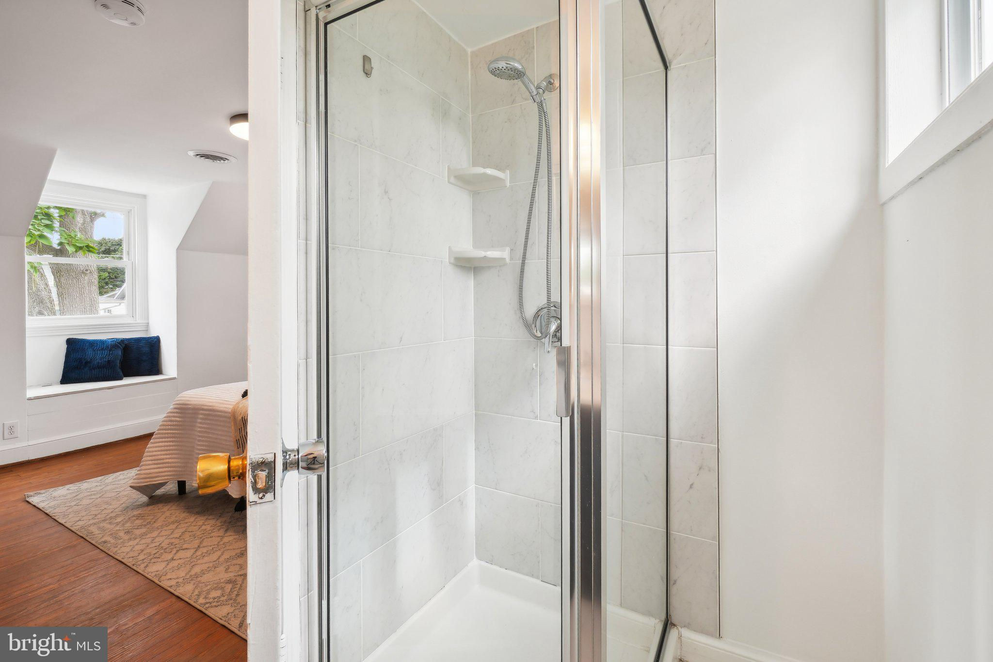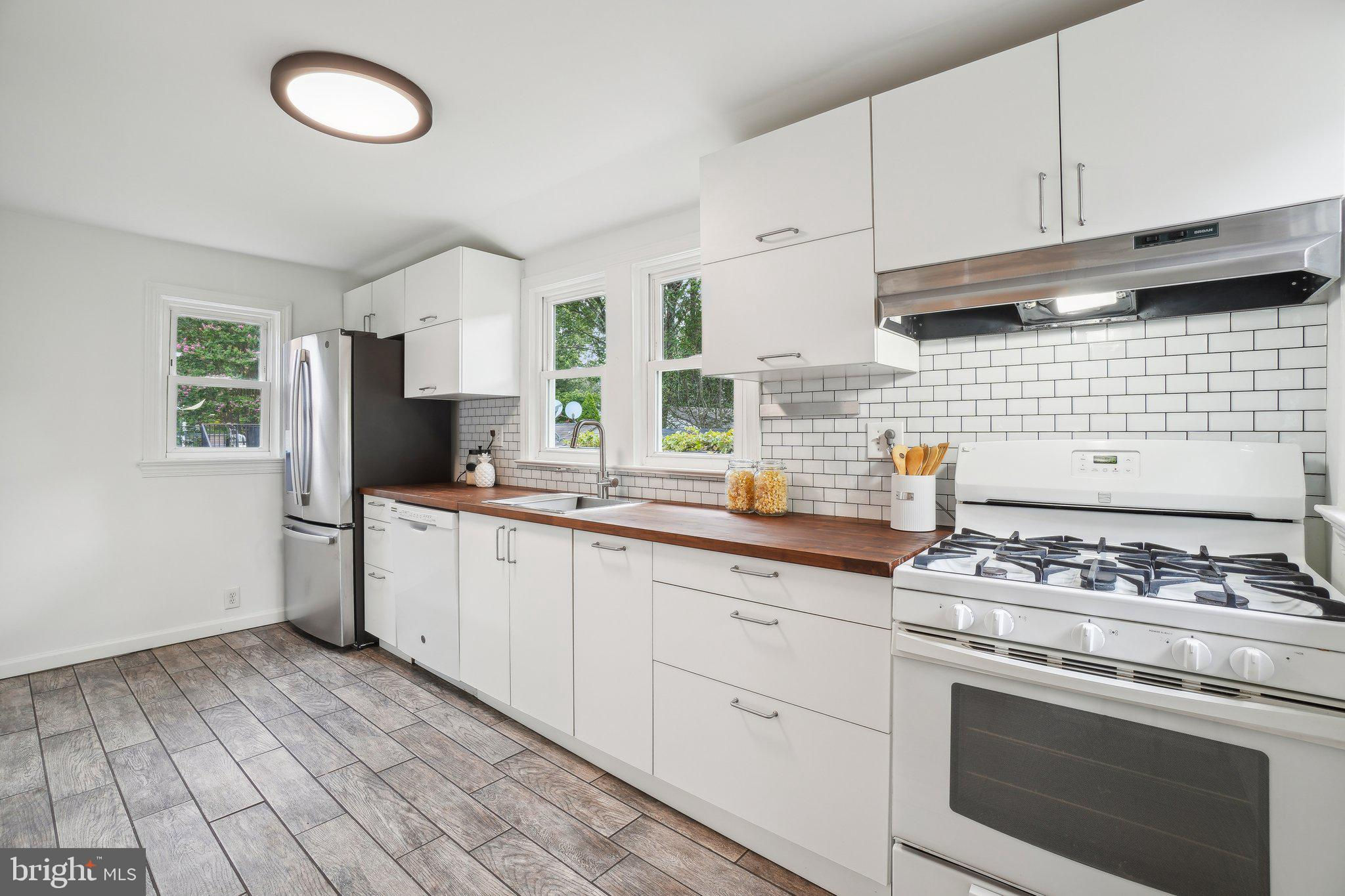 PENROSE STUNNER! All-brick Colonial is beautifully situated on a large, flat and wide 6,456sf lot on quiet S. Barton Street. An elegant walkway leads to covered front porch, adjacent to the double driveway pad and attached single-car garage. Entering through the front door leads to hardwood floors throughout the main and upper levels and abundant natural light through many windows. The spacious and inviting living room is complete with an elegant new stairway and banister, ceiling fan, and views into the dining room. Dining room is spacious enough for large get-togethers and holiday gatherings and is adjacent to a butler’s pantry as well as the kitchen. Kitchen features include butcher-block countertops, white cabinetry, gas range, stainless-steel French door refrigerator and attractive wood-look ceramic tile flooring. Stepping out from the kitchen leads to an open private backyard oasis, complete with patio, custom sun shades, pergola surrounded by Concord grape vines, large 8x12 shed, additional workshop/storage area, raised garden beds, and abundant green space. Upper levels include three bedrooms, two full bathrooms, and an en-suite primary bedroom/bathroom with abundant closet space. Owners’ suite includes a large walk-in closet and the en suite bathroom features a ceramic tile surround shower with glass enclosure. Additional features upstairs include a window bench seat with storage and a walk-up attic that provides abundant additional storage capacity. Lower-level features laundry area, abundant utility and storage space, a large rec room, built-in shelving, a wine cellar with 150+ bottle storage capacity and a custom designed, spa-inspired Finnish sauna and adjacent muti-head walk-in shower! Back door leading from kitchen to the backyard puts grilling on the patio within easy reach. Abundant updates throughout, a gas fired boiler for radiant heat, newer roof (2018). Heated, attached garage with remote door is immaculate - nice enough to store your dream car and still have room leftover for additional storage or a workshop. Amazing central Arlington location is hard to beat! Close to the Columbia Pike corridor boasting abundant shopping, dining, and grocery options, easy access to commuting via Route 50, I-395, close proximity to Ballston and Pentagon City for Metro, a short commute to Washington D.C., as well as Amazon’s HQ2 Headquarters @ National Landing, Reagan DCA Airport, and much more!