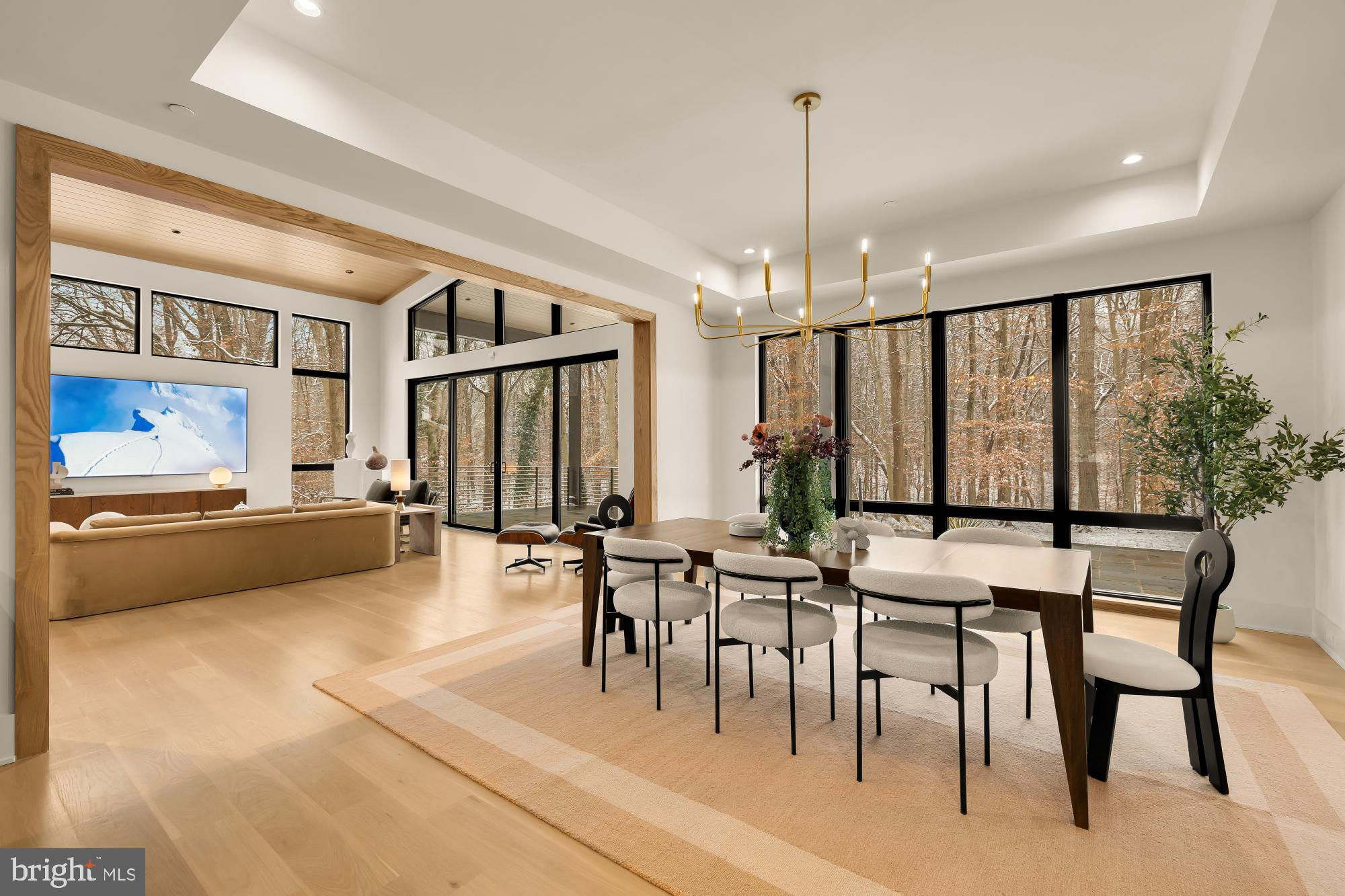 ***OPEN HOUSE SATURDAY Dec 13th from 1-3PM*** Framed by panoramic wooded views and backing to 25 acres of protected parkland, this newly constructed Mid-Century Modern masterpiece, built by Foxhall Homes and designed by ElieBen Architecture, balances sophisticated design with livability, featuring a private Savaria Eclipse elevator and seamless indoor-outdoor living. The handcrafted Starburst double entry doors in flat-sawn white oak (locally made by Phirst and Lassing) defines the home’s signature aesthetic. Wide-plank white oak floors, rift-cut TruStile solid-core doors with Emtek hardware, and custom white oak millwork reinforce an organic modernist feel throughout. The heart of the home is a chef’s kitchen anchored by a 10-foot Cristallo Iceberg Quartzite island surrounded by custom rift-sawn white oak cabinetry. The culinary engine is a showpiece custom matte-black and satin-brass BlueStar 48” Nova RNB range paired with paneled 48” Jenn-Air refrigerator. The fully equipped butlers pantry with integrated under shelf lighting, wine refrigerator and sink serves as a discreet service area for effortless hosting and organized storage.Open living spaces are designed for presence and comfort. A sculptural ring chandelier with reeded glass panels floats above the gas fireplace. The vaulted family room, clad in Modern Mill ceiling accents, features a curved wet bar and direct access to the full-width bluestone covered terrace overlooking the serene parkland. The primary suite is a true sanctuary with expansive woodland views from the private balcony. The spa-inspired bath offers radiant-heated terrazzo floors, curbless two-person shower with thermostatic controls, six-foot solid-surface tub with Kallista filler, and floating rift-sawn white oak vanities illuminated by alabaster sconces from Visual Comfort. The daylight walk-out lower level impresses with nearly 10-foot ceilings, full-height windows, a wraparound bar, custom home gym, and premium finishes—ideal for media, entertaining, or overnight guests. Beyond stunning aesthetics, this home is engineered to last, exceeding building standards with superior materials: Huber ZIP System sheathing, Advantech subflooring, and Andersen 400 Series casement windows. The low-maintenance exterior combines Hardie Artisan and Modern Mill Acre composite siding with elegant Watsontown brick accents—built to look flawless for decades.Smart & Efficient Systems include: ● 5-zone in-ceiling Sonos with VSSL amplification and AirPlay ● Dual-zone Carrier high-efficiency HVAC with ecobee thermostats● Prewired for full security suite and hard-wired mesh network● EV-ready garage with R-18 insulated high-lift door Timeless Mid-Century design meets uncompromising craftsmanship in an unbeatable private setting. Schedule your private tour and experience the distinct character firsthand.