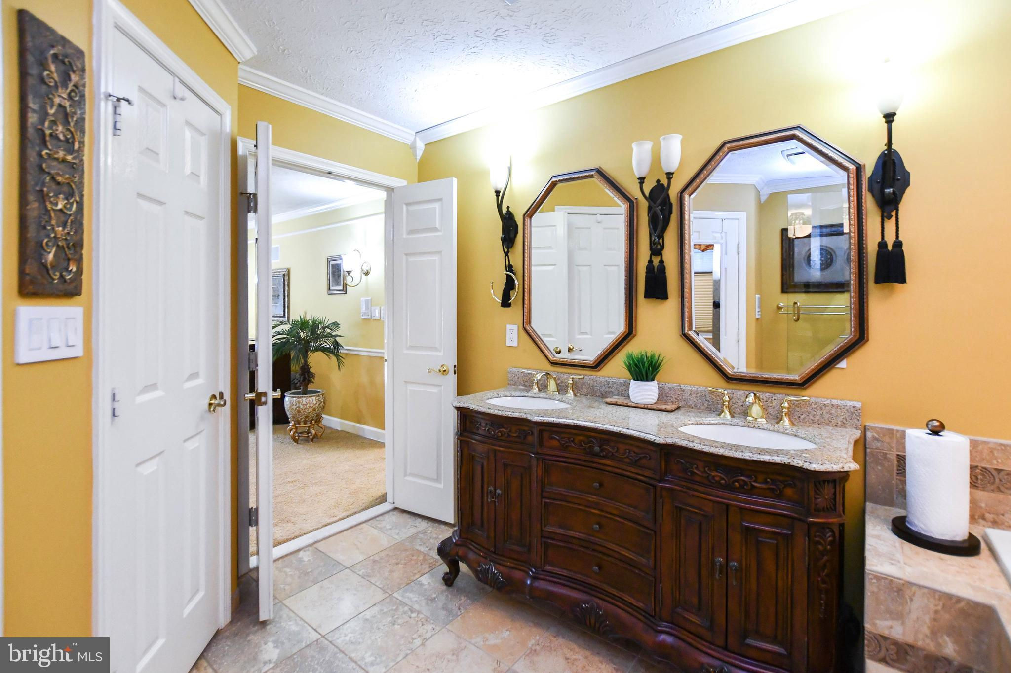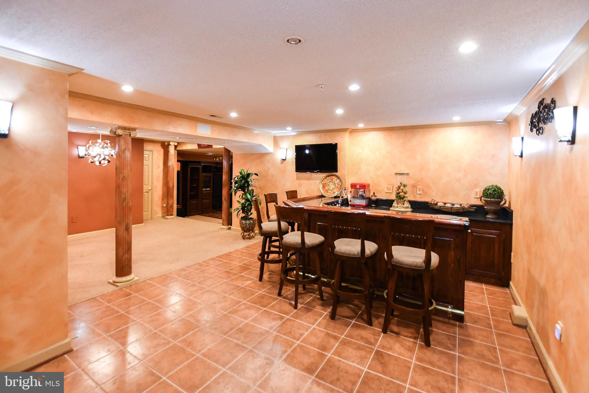 Welcome to this beautifully maintained 4-bedroom, 3.5-bath colonial home, perfectly situated in a peaceful cul-de-sac and surrounded by lush, professionally landscaped grounds both front and back. Offering elegance, comfort, and exceptional functionality, this home is designed for both everyday living and memorable entertainment. The main level features a warm and inviting layout, including separate living and dining rooms, a private library, and gleaming hardwood floors. The spacious kitchen is a chef’s delight with a center island, granite countertops, granite backsplash, stainless steel appliances, built-in granite bookcase, and heated ceramic flooring. The adjoining family room offers a cozy fireplace, perfect for gatherings. A convenient laundry room with washer and dryer and a guest half bath completes this level. Upstairs, you’ll find four well-appointed bedrooms and two full baths, including a luxurious primary suite with a sitting area, recessed lighting, and an en-suite spa-inspired bath with jet tub and steam shower. One of the secondary bedrooms features a custom built-in bookcase ideal for display or study space. The fully finished basement is designed for entertaining and productivity, showcasing custom columns, recessed lighting, a built-in office, and an impressive custom wet bar. Additional highlights include a home theater room, full bath, storage room with shelving, scrub sink room, fireplace, and walkout access to the backyard. A built-in refrigerator closet, lighting panel, and house generator add convenience and peace of mind. Outdoor living shines with an expansive patio, built-in grill and outdoor kitchen area, and underground sprinkler system perfect for hosting gatherings or enjoying peaceful evenings outdoors. The property also includes a 2-car garage with additional driveway parking. Additional features include whole-house surround sound system, security system with 7 cameras, and more. Located minutes from major commuter routes, shopping, dining, and local parks. This home offers the perfect blend of privacy, comfort, and accessibility. A truly exceptional property you’ll love to call this home.