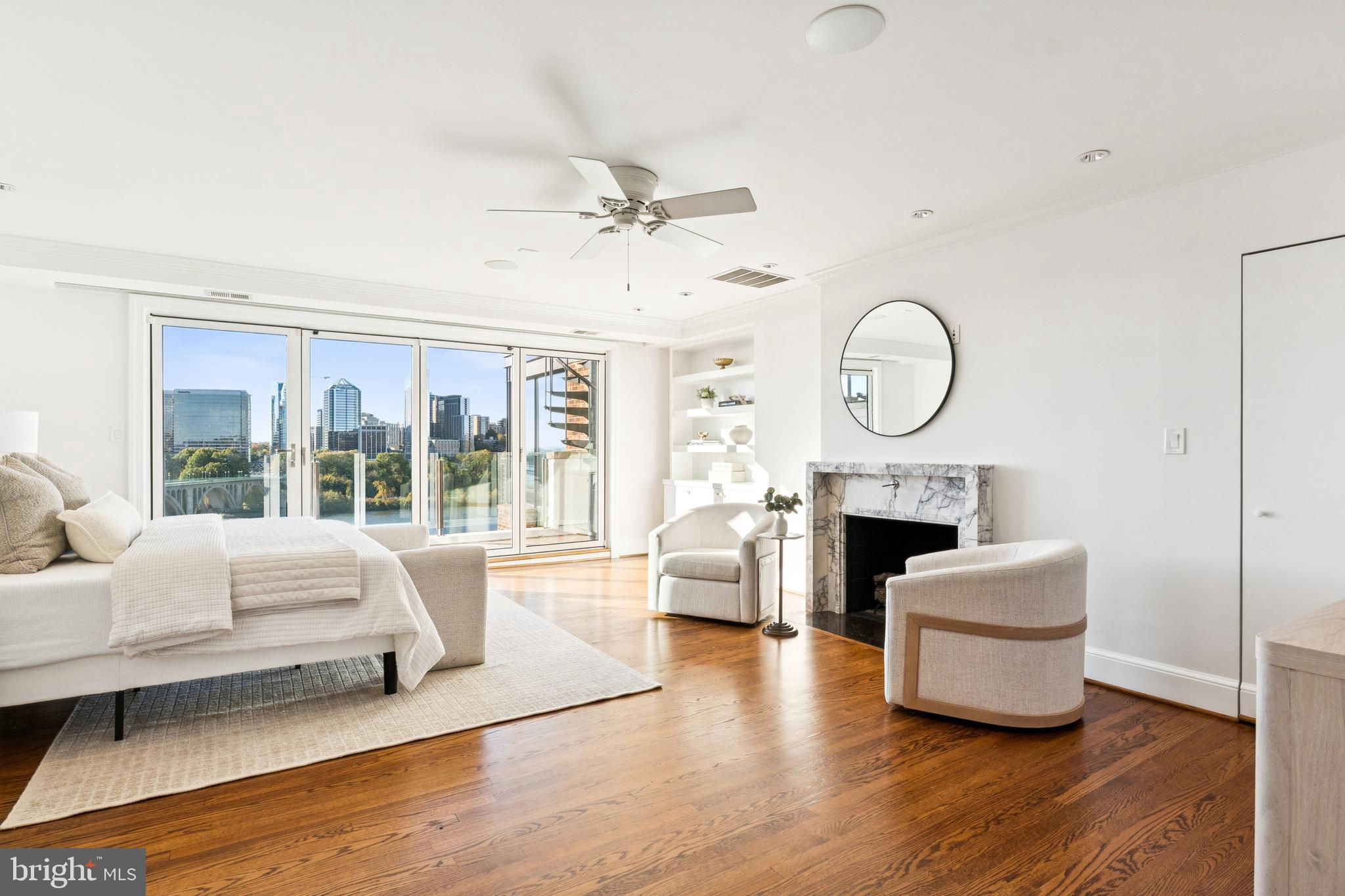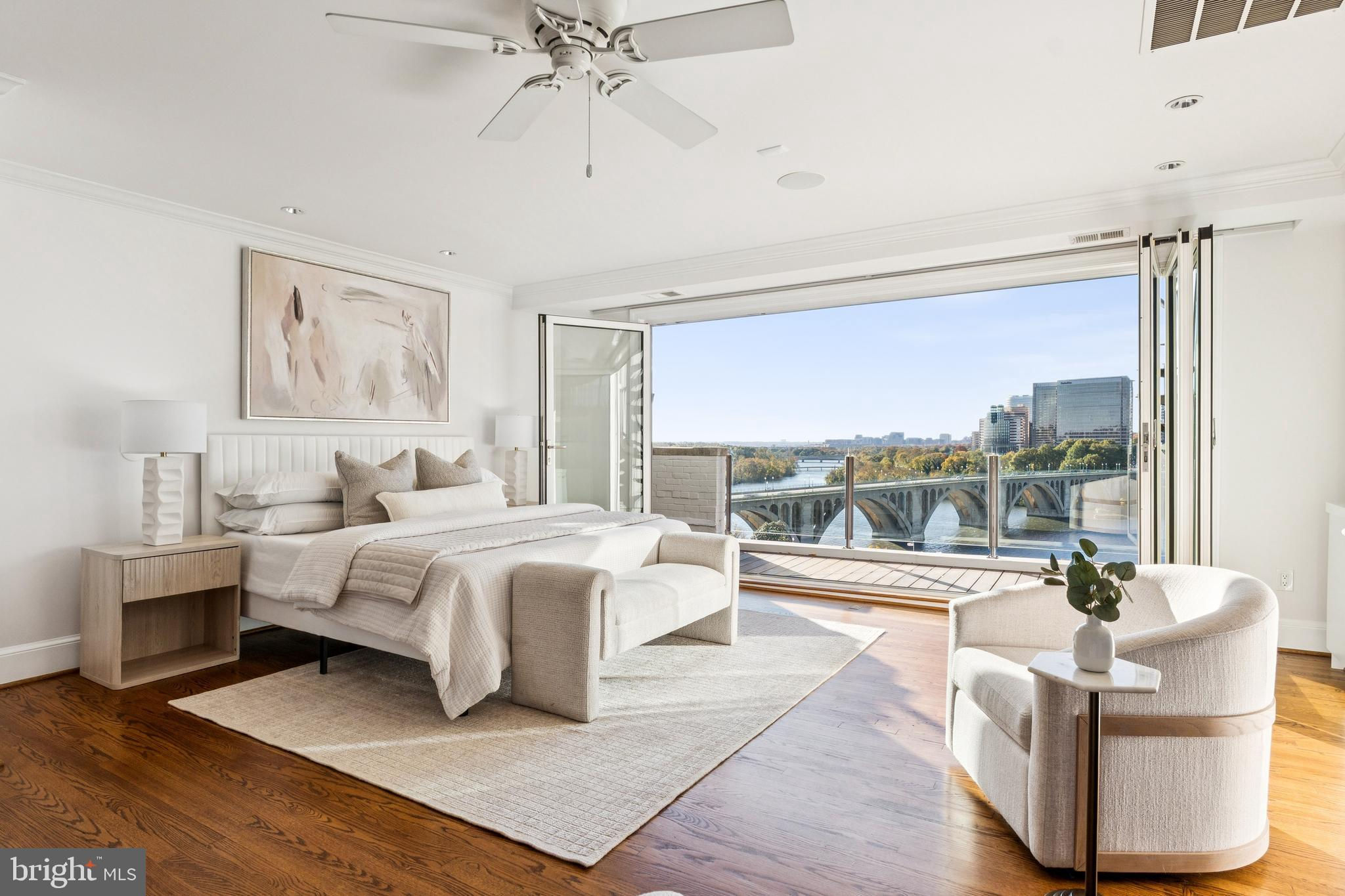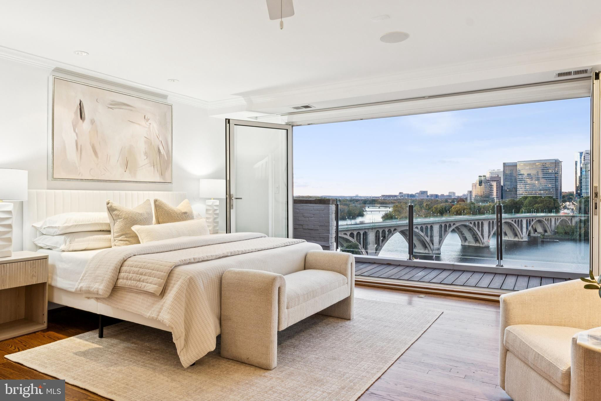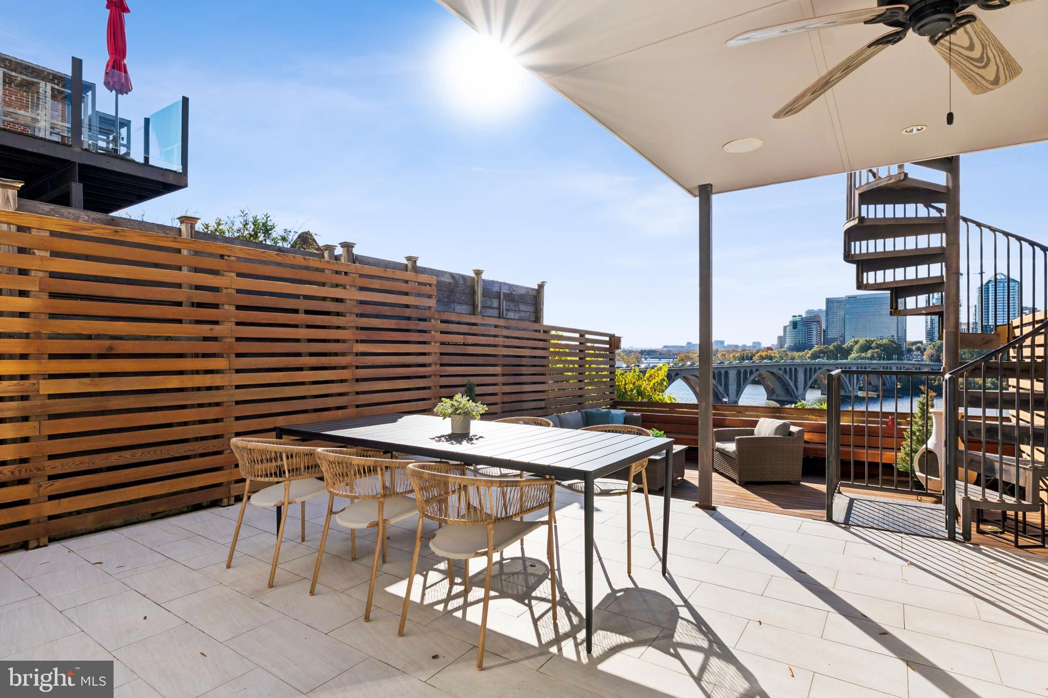 Perched high above the Potomac with sweeping, panoramic river and city views, this exceptional Georgetown residence stands peerless in the marketplace and truly defines elevated living. Refined architectural details adorn the property throughout, with south-facing floor-to-ceiling glass windows and doors on every level that open to multiple decks with both dining and lounge sections and uninterrupted, breathtaking vistas of the river and skyline on every level - including the Key Bridge, the Rosslyn skyline, the Lincoln Memorial, the Kennedy Center, and the Washington Monument.Encompassing more than 3,500 square feet over four dramatic levels, this extraordinary home designed by esteemed architect Henry Goodfellow Hunt features three bedrooms, three full bathrooms, and two half bathrooms, effortlessly balancing grand scale with intimate comfort. The expansive main living room level is an entertainer’s dream, distinguished by soaring 10’ ceilings that accentuate its openness and grandeur. A gas-burning fireplace with a mantle clad in the same Indiana Limestone used on the National Cathedral serves as a striking centerpiece, complementing the breezy indoor-outdoor flow that invites guests to gather and admire the stunning views.An elevator services all floors, culminating in the upper-level primary suite where Washington’s most captivating panoramas unfold in spectacular fashion. The primary features a gas fireplace, a large walk-in closet, and a renovated bathroom replete with luxurious finishes. From the top-floor vantage point, the river and cityscape unfold in cinematic fashion, creating an atmosphere of unparalleled tranquility.Two spacious bedrooms and two full bathrooms occupy the third floor, offering privacy and flexibility for family and guests. Each bedroom is enhanced by beautiful natural light and is thoughtfully designed for comfort and ease of living. Additional highlights include a renovated chef’s kitchen, a one-car garage, and more than 800 square feet of outdoor living space ideal for al fresco dining, tranquil morning coffee, or entertaining guests while overlooking the Potomac River.Perfectly situated at the end of Georgetown’s West Village and just minutes from the airport, this residence is walkable to neighborhood favorites including 1789 Restaurant, Fitzgerald’s cocktail bar, the iconic Cafe Milano and the boutiques and cafés that define Georgetown charm. Rare and remarkable, this home represents a once-in-a-generation opportunity to own one of Washington’s most magnificent views.